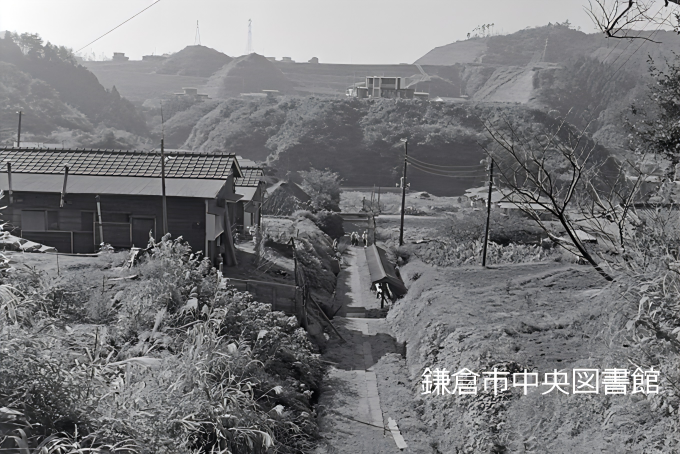 明治10年(1877年)に玉縄小学校が龍寶寺へ移設され、岡本の児童は遠回り通学となりましたが、角田所作衛門氏が奔走し、素掘り通路を整備しました。
