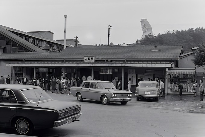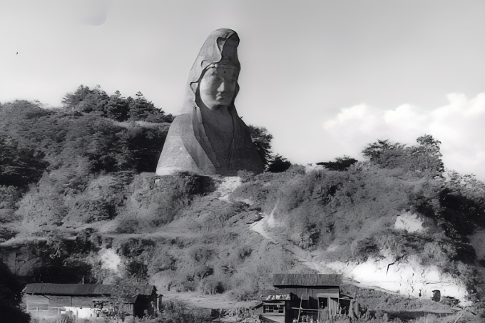 大船駅西口の丘陵に建つ白衣観音は、昭和4年(1929年)に着工しましたが、昭和恐慌と戦争で工事は20年以上中断。