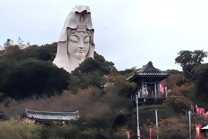 その後、市民の募金などで工事が再開され、昭和35年(1960年)に現在の観音像が完成しました。