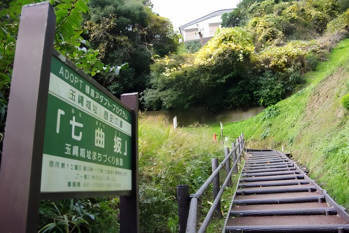 鎌倉市植谷戸の丘陵を登る坂道で、急勾配と曲がり道が特徴であるため、古くから『七曲坂』と呼ばれました。